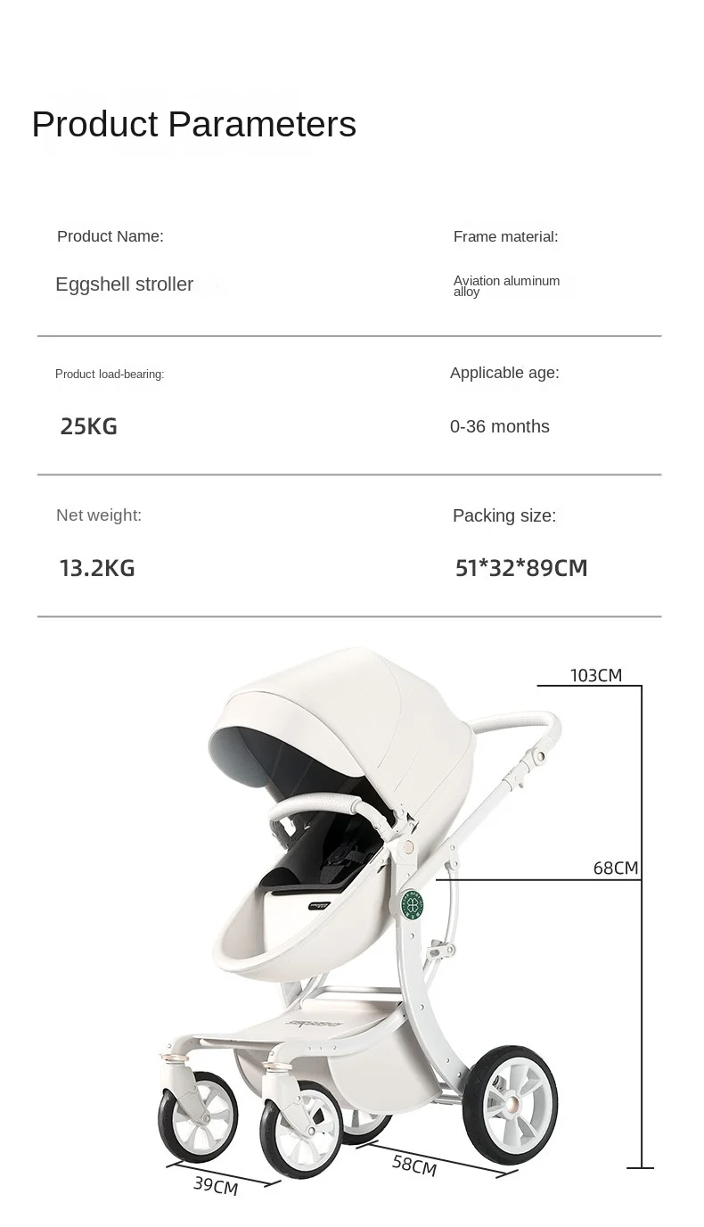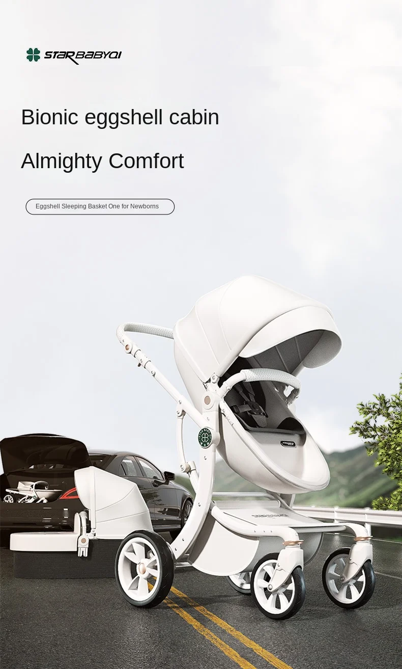 Baby Stroller Spine Protection Eggshell Stroller High-View Foldable 2-Way Shock-Absorbing Sit Or Lie Down Sleeping Basket Model