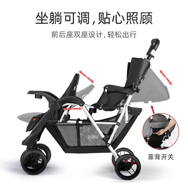 Double Baby Cart Second Child Size Treasure Front and Rear Seats Newborn Seatable Foldable Lightweight Cart