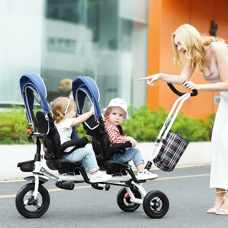 Twin Children’s Tricycles Bicycles Twin Baby Strollers Children Double Bicycles 1-5 Years Old Baby Strollers Can Be Turned